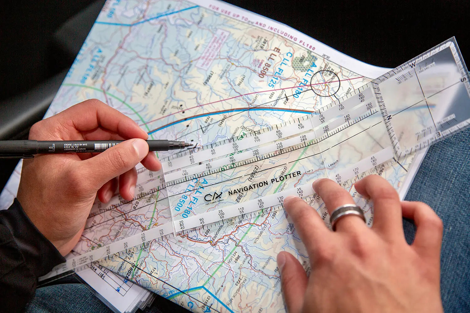 Der faltbare Navigationsplotter mit Skalenlineal ist ein praktisches Hilfsmittel für Flugtraining und Navigation. Seine Kurslinie verläuft über die gesamte Länge des Plotters und ermöglicht so eine präzise Kursmessung anhand von Breiten- oder Längengraden. Die Skalen für WAC (1:1.000.000), VNC (1:500.000) und VTC (1:250.000) sind in Seemeilen, Landmeilen und Kilometern kalibriert. Dank des flexiblen Designs lässt sich der Plotter im Cockpit an Karten anpassen und ist somit auch auf engstem Raum während des Fluges leicht zu bedienen. Kompakt und tragbar, lässt er sich ordentlich zusammenfalten und passt in jede Flugtasche – ideal für Flugschüler und erfahrene Piloten gleichermaßen.