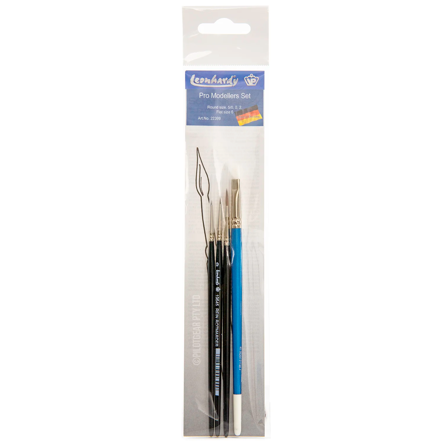 The VP Leonhardy 4-Piece Pro Modellers Set is designed for precision, control, and professional results. Made in Germany by Vereinigte Pinselfabriken Leonhardy, these brushes reflect over a century of expertise in fine brush making.