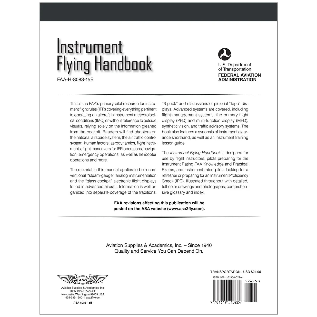 This is the FAA’s primary pilot resource for instrument flight rules (IFR) covering everything pertinent to operating an aircraft in instrument meteorological conditions (IMC) or without reference to outside visuals, relying solely on the information gleaned from the cockpit. Readers will find chapters on the national airspace system, the air traffic control system, human factors, aerodynamics, flight instruments, flight maneuvers for IFR operations, navigation, emergency operations, as well as helicopter operations and more.